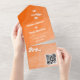 Peach Orange Retro Wave Groovy 70s QR Code Wedding All In One Invitation