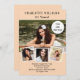 Create your own unique photo collage. Use four, 4 of your favourite photos. Personalise and add a name and party details. A peach coloured background, black text.
