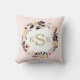 Peach Pink Black Gold Floral Wreath Monogrammed Cushion