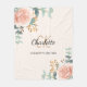 A stylish soft peach, cream coloured background. Decorated with watercolored rose gold and blush pink floral, rose, eucalyptus leaves, sprigs, greenery, faux gold leaves. Personalise and add the first name, monogram initials and full name.