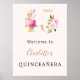 Peach pink florals number Quinceanera welcome Poster