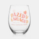 Peach Pink Retro Dazed and Engaged Stemless Wine Glass