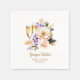 Peach Purple Floral Champagne Glass Bridal Shower Napkin