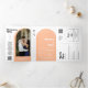 Peach Retro Boho Arch Photo QR Code Wedding Tri-Fold Invitation
