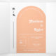 This is an all-in-one Tri-Fold Wedding Invitation that features an elegant and groovy modern minimalist boho design with a retro script font in an arch shape on a peach background along with a photo and QR Code. The simplicity of this design adds a touch of elegance to your wedding. It works well with many wedding themes and definitely a great addition to your wedding. Just customise the names and wording in a few easy steps in the text fields and personalise the all-in-one tri-fold invitation card with your photo of the happy couple and replace the QR Codes with yours to give your invitation a nice personal touch. This invitation will save you money to send everything at once. It has a RSVP postcard that your guest can just send it back. Just simply fold each invitation card into the outlined shape -- seal and send to your guests. No envelope is needed for shipping -- just postage.
