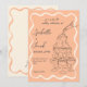 Peach Retro Champagne Tower Hand Drawn Wedding Invitation