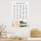 This gorgeous wedding seating chart features a photo of a long-stemmed pale orange or light peach coloured rose lying on its side reflecting in a pool of water with waves and ripples. The title reads "please find your table" in elegant lacy script calligraphy. There is space for the up to 250 names with the names of the couple and wedding date below. Wonderful way to help your guests find their tables while making your reception more beautiful.