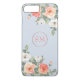 Peach Rose Dusty Blue Floral Monogram Case-Mate iPhone Case