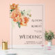Welcome your wedding guests with this elegant frosted acrylic sign featuring branches of peach roses, peonies and white flowers with sage green leaves in the upper left corner, beautifully framed by a fine black border. The charming floral accents and decorative typography create a warm invitation for everyone to celebrate your special day.