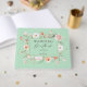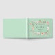 This feminine and pretty floral wedding guest book feature peach and white flowers with greenery and rose gold elements on top of a mint green background. This would be perfect for a classic and romantic outdoor wedding. Personalise the front cover with the names of the bride and groom.