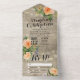 Peach Roses Rustic Wood String Lights Wedding RSVP All In One Invitation