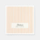 Baby shower paper napkins from our "Sweet little peach" theme collection, featuring a pastel peach striped background and a vintage script font.