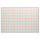 A plaid patterns using the pastel colours of peach, teal and lime green.