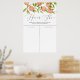 A fun poster to have at your gender reveal party! Illustration of watercolor peaches on a tree branch with a text that says "he or she" at the top asking guests to cast their vote on what they think the baby's gender is going to be. Guests can vote for team boy or team girl. A fun game activity to do at your party.
