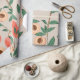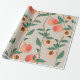 Peach tree branches with leaves and fruits on a li wrapping paper