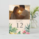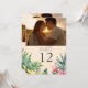 These modern elegant peach watercolor tropical flowers with greenery photo table numbers are perfect for all celebrations. Designed by Thisisnotme©