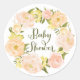Peach Watercolor Peonies Wreath Baby Shower Classic Round Sticker