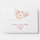 Complete the look of your wedding invitations with our elegant peach return address envelope. Featuring vintage-inspired monogram initials of the bride and groom and adorned with modern boho floral lace, it adds a touch of timeless charm to your wedding stationery ensemble.