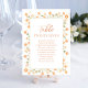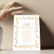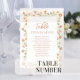 Add a sophisticated touch to your special day with this weddings table number card, featuring a simple, elegant layout with flowing calligraphy script and clean typography. Designed in a minimalist style, it beautifully showcases guest names and table number for seamless seating. Accented with soft peach floral details and delicate greenery, it's the perfect piece to enhance your reception decor with timeless charm and personalised style.