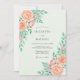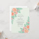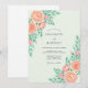 Soft watercolor peonies in shades of peach and coral create a romantic aesthetic across this design. Lush green foliage and delicate leaves accent the composition against a pale mint wash background. This botanical artwork captures the airy and fresh feel of a seasonal blooming meadow, featuring artistic floral illustrations.