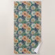 Peach White Blue Green Floral Beach Towel