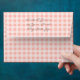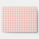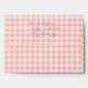 Elegant coral pink and white A7 greeting card envelope with stylish and vintage gingham rustic chequered pattern. Customise it with your return address. Available in matching cards and many other wedding products.