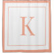 peach and white Initial monogram shower curtain .modern stylish white custom shower curtain. home gift ,