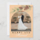 Merry & Married Peach Blush Winter Pine Cone Greenery Botanical Photo Christmas Card - Celebrate your first Christmas as newlyweds with this elegant holiday card featuring a soft peach blush background and festive pine greenery. The trendy arch-shaped photo frame highlights one cherished image—ideal for a wedding or engagement photo. Beautiful calligraphy adds a romantic touch, and the back includes an editable message area for personalized greetings. A stylish way to share winter wishes and mark your "First Christmas as Mr. & Mrs."