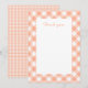 A pretty thank you card featuring a gingham border in a peaches and cream palette.