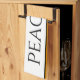 This fun classy design features PEACHES text inside a wide white centre stripe highlighted with black, yellow, and orange pinstripes against bright golden yellow outer stripes. The text can be personalised.