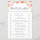 Would she rather? What will the bride rather do? Add this fun and playful botanical shower game card to your event. It features watercolor illustrations of peaches, pink flowers with a greenery accent. You can personalise the card by adding back texts. This pastel botanical would she rather shower game card is perfect for spring and summer weddings and bridal showers.