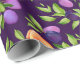 Peaches Plums Purple Cute Fruit Botanical Pattern Wrapping Paper