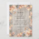 Evokes a romantic and natural feel with soft peachy blooms framing a rustic wood texture. The warm glow of delicate lights adds an enchanting ambiance for a truly memorable occasion.