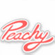 [Sticker] " Peachy " in the colour red . Other colours are also available