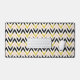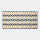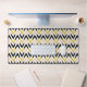 Stylish desk mat with black, white, peachy pink and faux glitter golden chevron pattern.