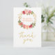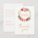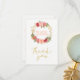 Peachy pink gold roses wreath wedding thank you card