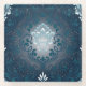 Peacock and Cyan Damask Glass Coaster