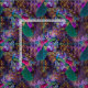Peacock and Flowers on Purple Fabric