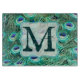 Peacock Bird Feather Teal Turquoise Vintage Victorian Monogram Initial Glass Cutting Board Personalised