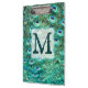 Peacock Bird Feather Teal Turquoise Vintage Victorian Monogram Initial Clip Board Personalised