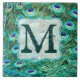 Peacock Bird Feather Teal Turquoise Vintage Victorian Monogram Initial Decorative Display Tile Personalised