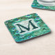 Peacock Bird Feather Teal Monogram Drink Coaster