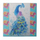 Peacock Blue Bird Watercolor Aqua Ceramic Tile