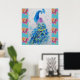 Peacock Blue Bird Watercolor Aqua Rose Poster
