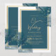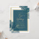 Peacock Blue Gold Alcohol INK Chic Wedding Invite