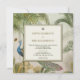 Peacock Blue Square Tropical Peacock Palm Wedding Invitation