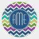 Peacock Colours Chevron Pattern Custom Monograms Classic Round Sticker