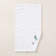 Bath towel set, consisting of a face cloth, hand towel and bath towel with a peacock design. You can customise this bath towel set with any text of your choice. Should you require any help with customising then contact us through the message link on this page. Peacock design bathroom towel set