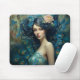Peacock Feather Beauty: Woman in Teal and Blue Mouse Mat