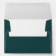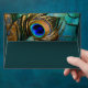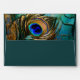 A beautiful faux shimmering peacock feather rests aainst a marbled background. The plume appears to sparkle and shine and the dark teal envelope colour makes it pop. This elegant and luxurious design is ideal for any peacock themed event or function.